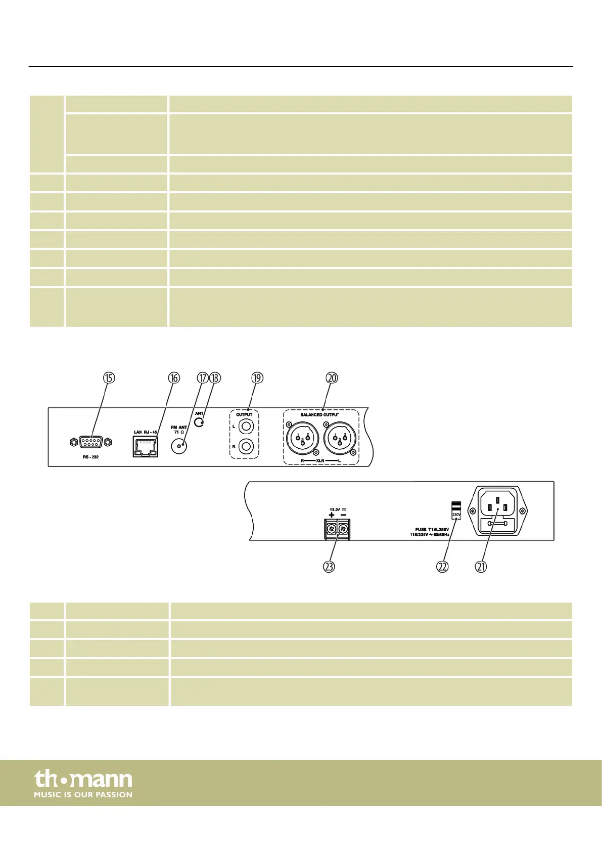 17 [FM ANT 75 Ω] Connection for antenna cable
