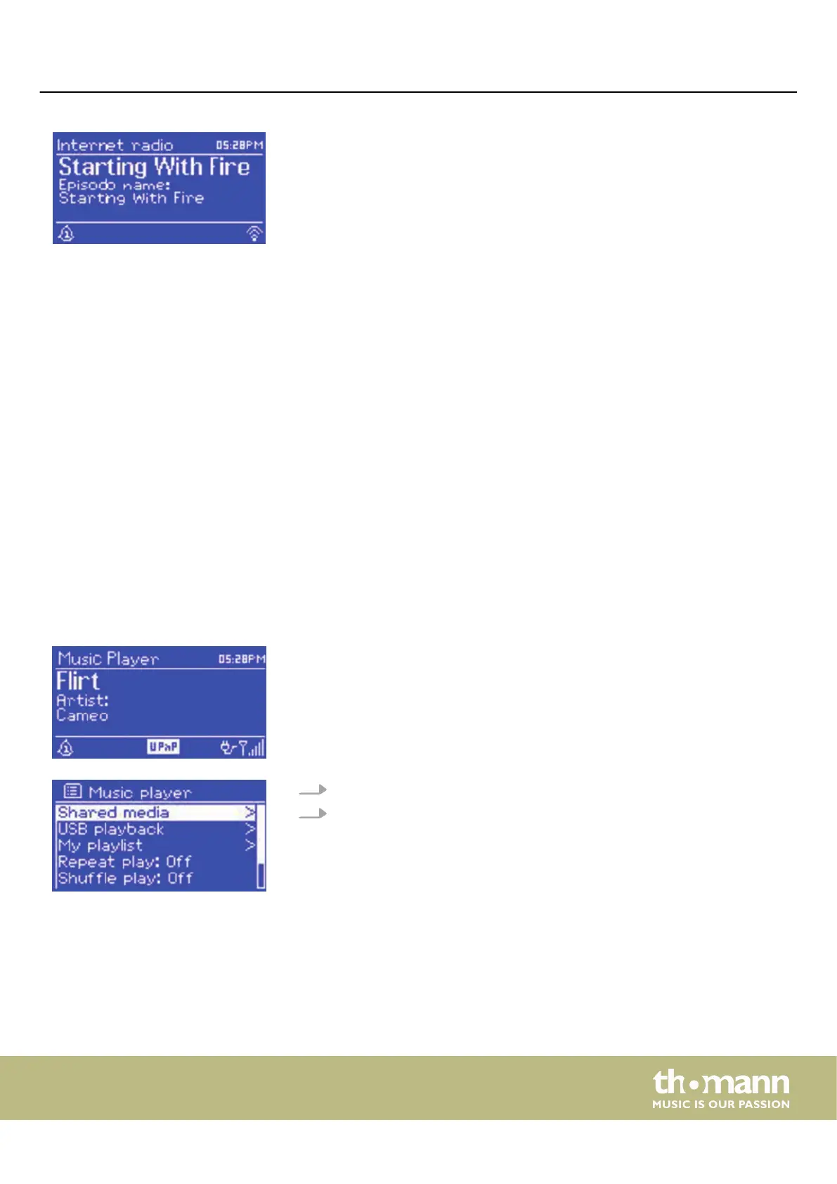 1. Call up the music player mode with [MODE] or via the ‘Music player’ menu.
