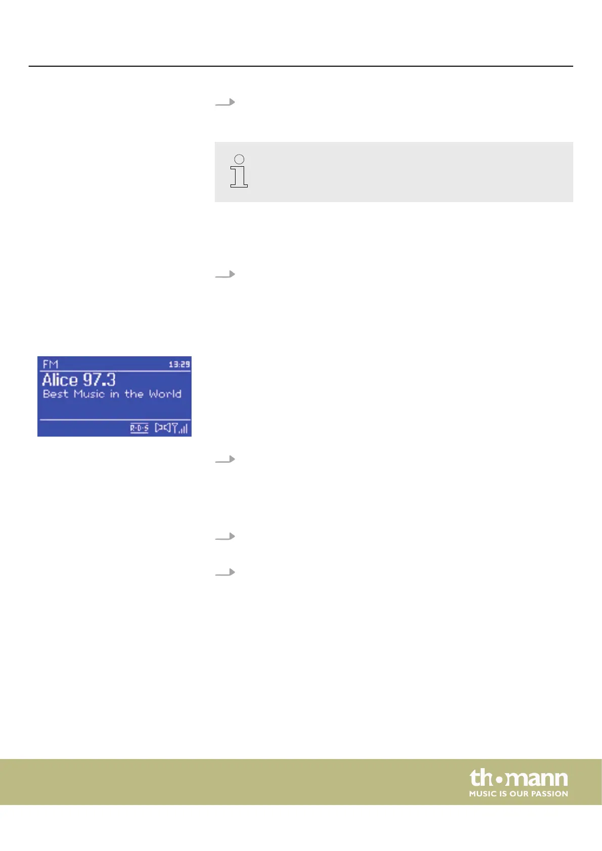 Call up the FM radio mode with [MODE] or via the ‘FM’ menu.