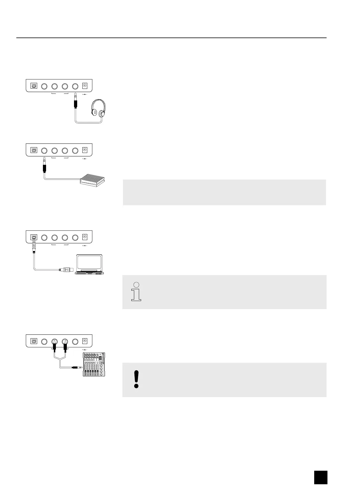 Via this output, the MIDI data generated by the digital piano are transferred to a PC