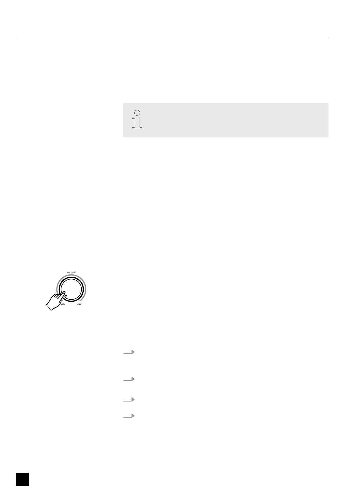 ‘minimum’. To increase the volume, turn the volume knob clockwise