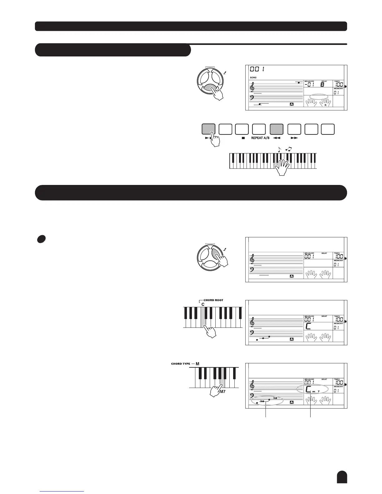 The LCD will display the Chord and its keyboard