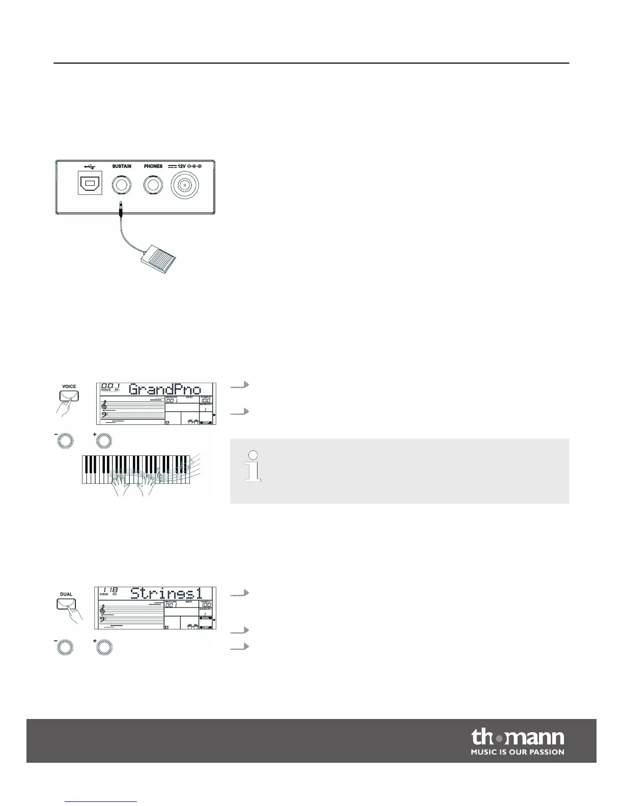 the symbol ‘DUAL ’ is lit. The currently set second voice also appears in the dis‐