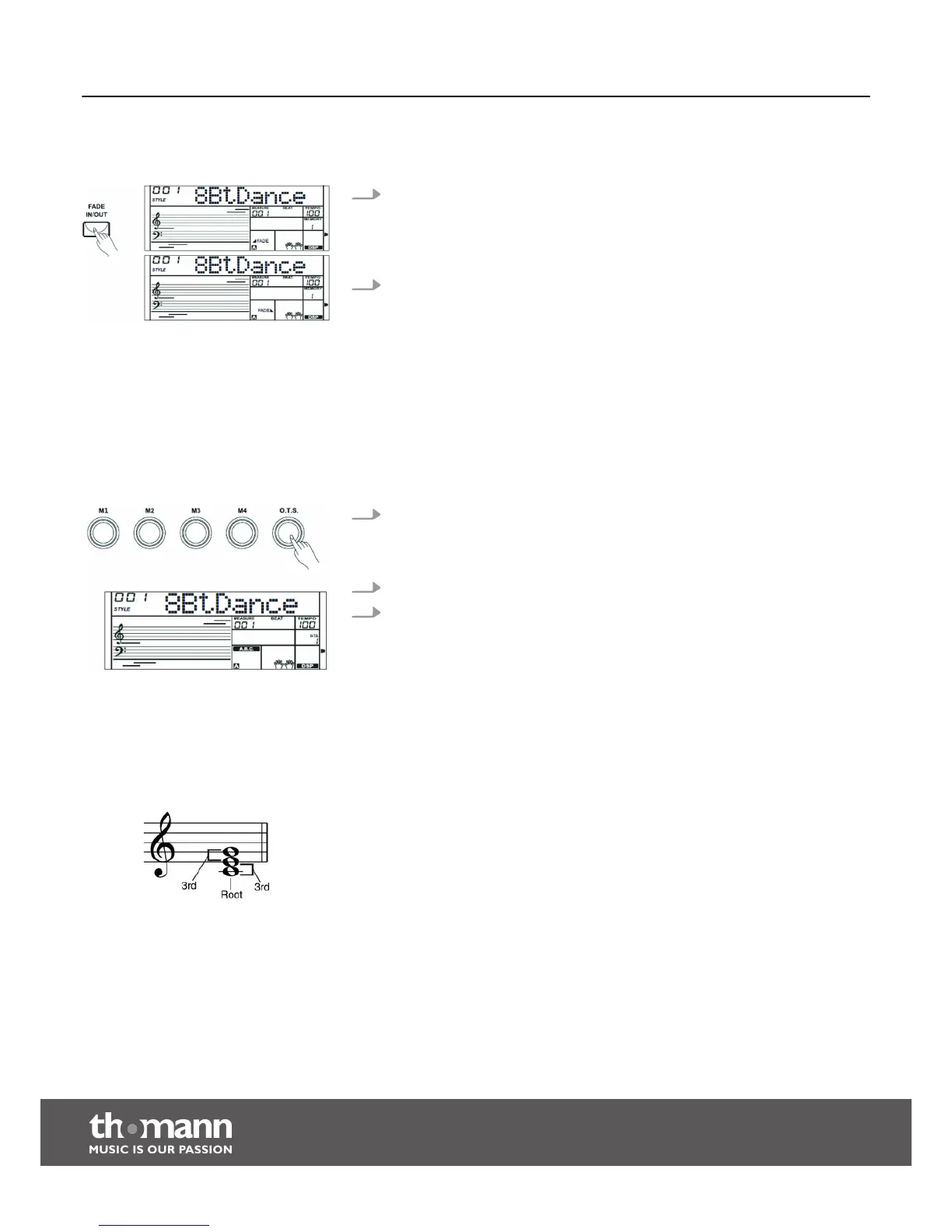 Press the [FADE IN/OUT] button while no Style is played.