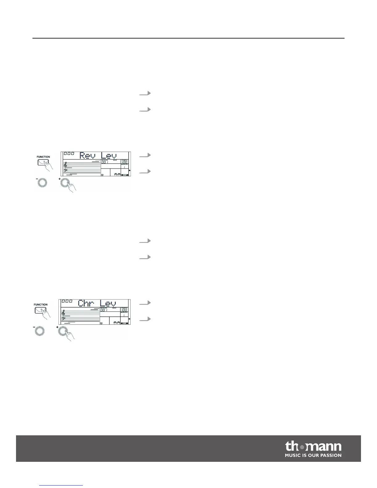 1. Press the [FUNCTION] button to select the setting for the Reverb effect. The dis‐