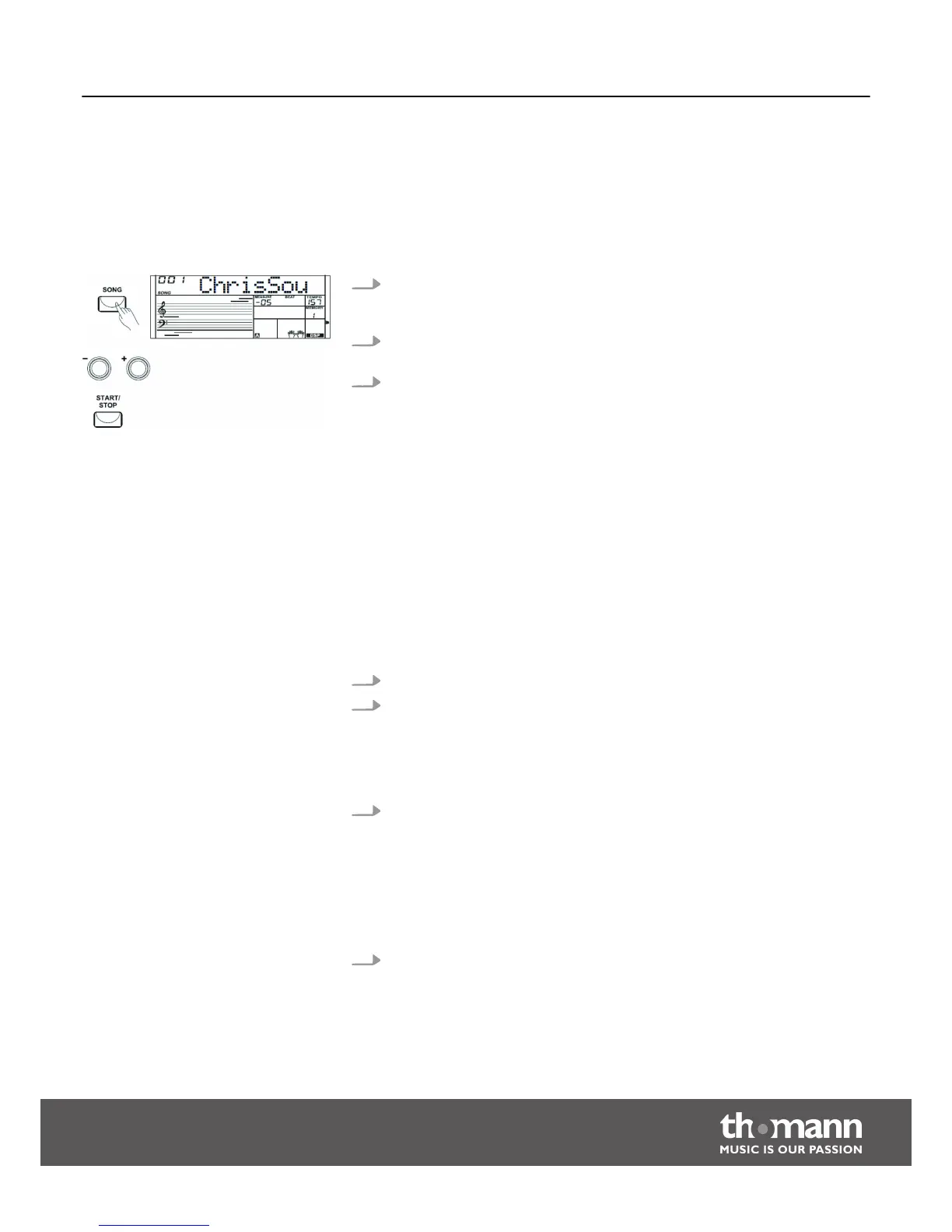 2. In ‘SONG’ mode, use the numeric buttons or the [+] and [–], [START/STOP] but‐