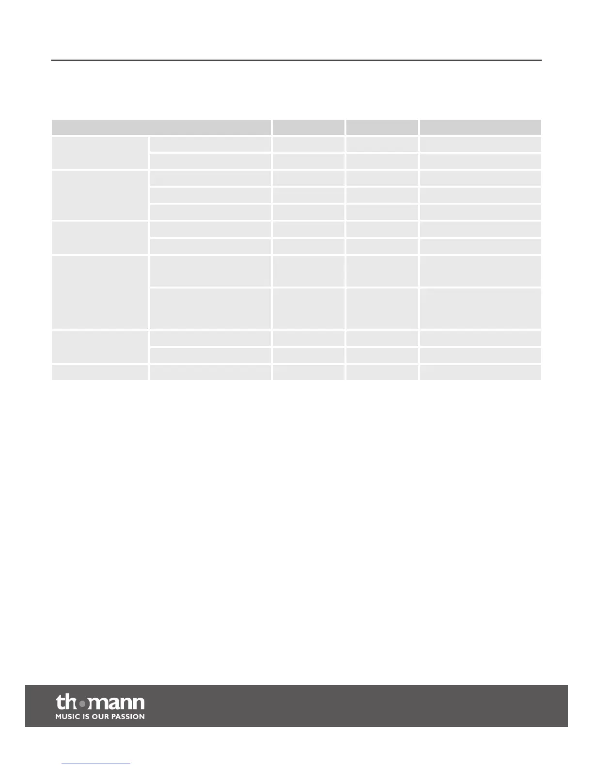 MIDI implementation chart