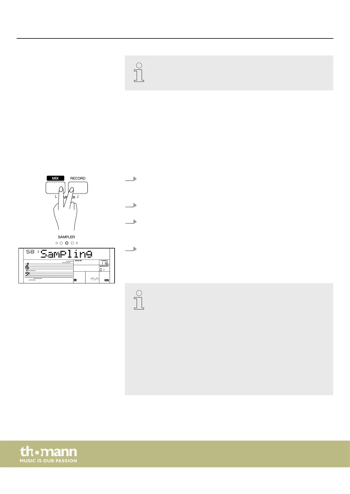 1. Press [MIX] and [RECORD] simultaneously to enable the sampler mode.