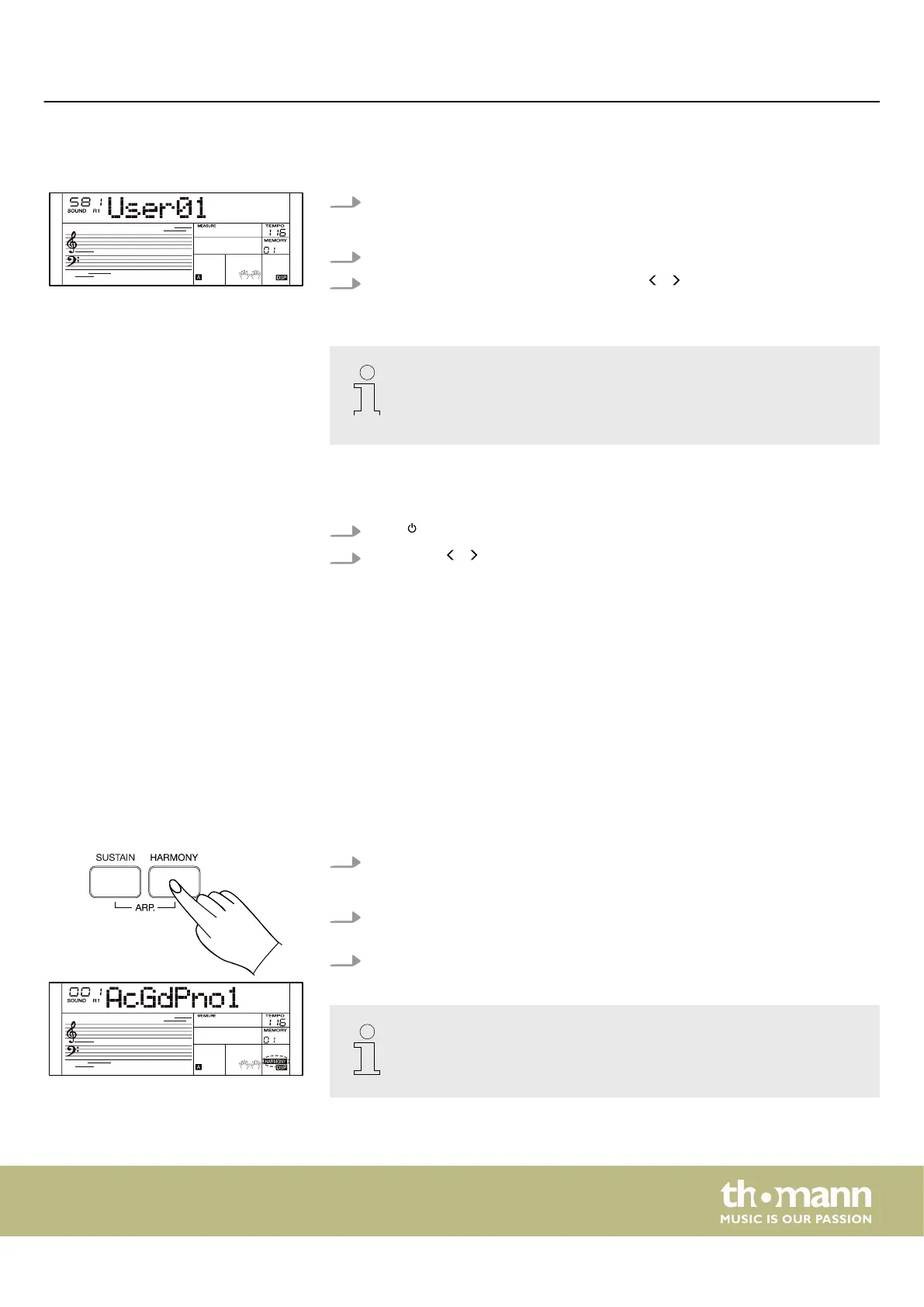 The keyboard oers the eects ‘Harmony’ and ‘Arpeggio’ . These eects are used to