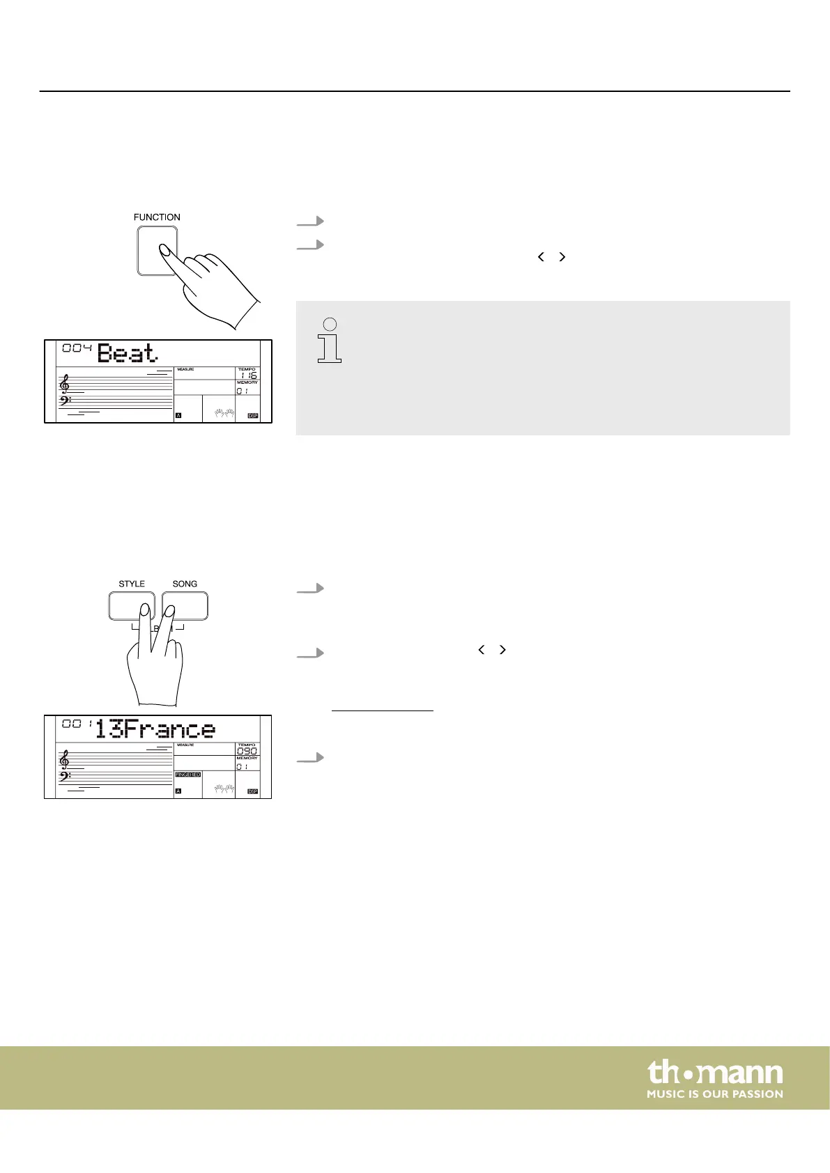 1. Press [STYLE] and [SONG] simultaneously to call up the album menu and acti‐