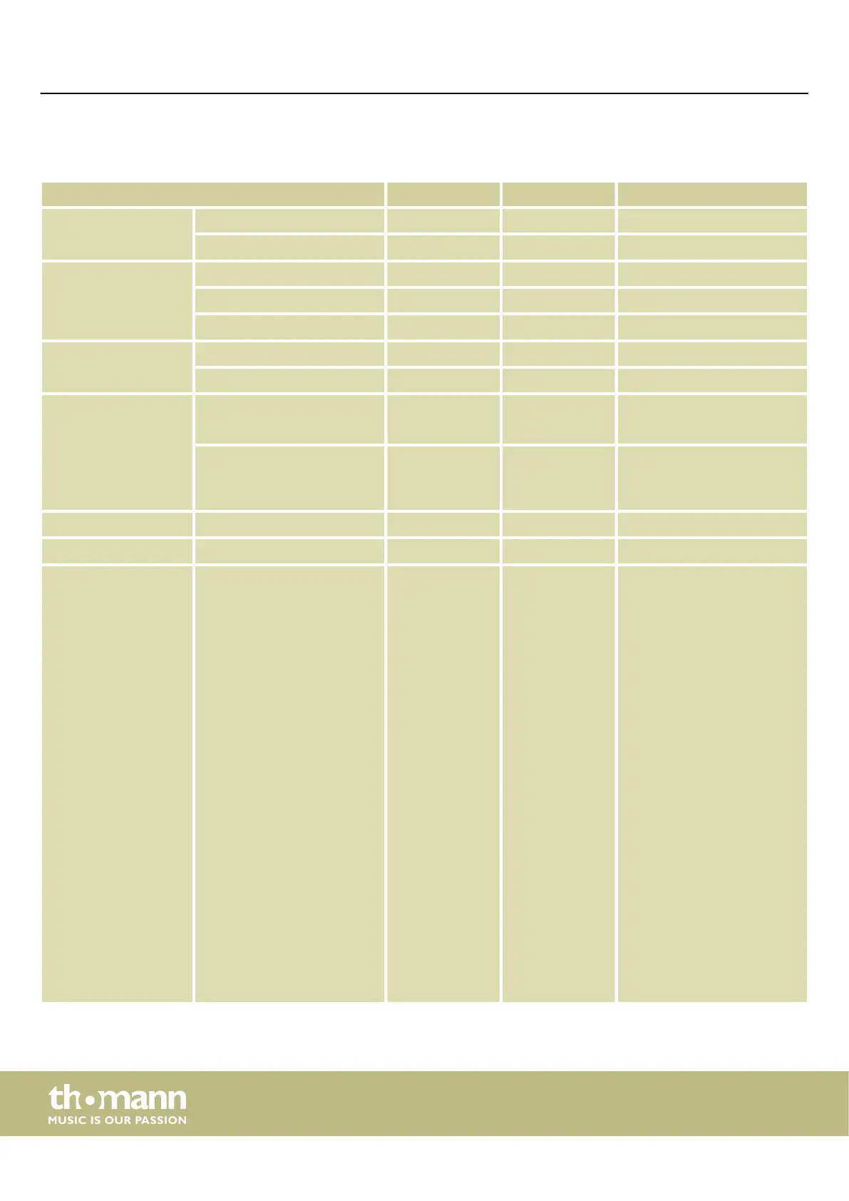 MIDI implementation chart