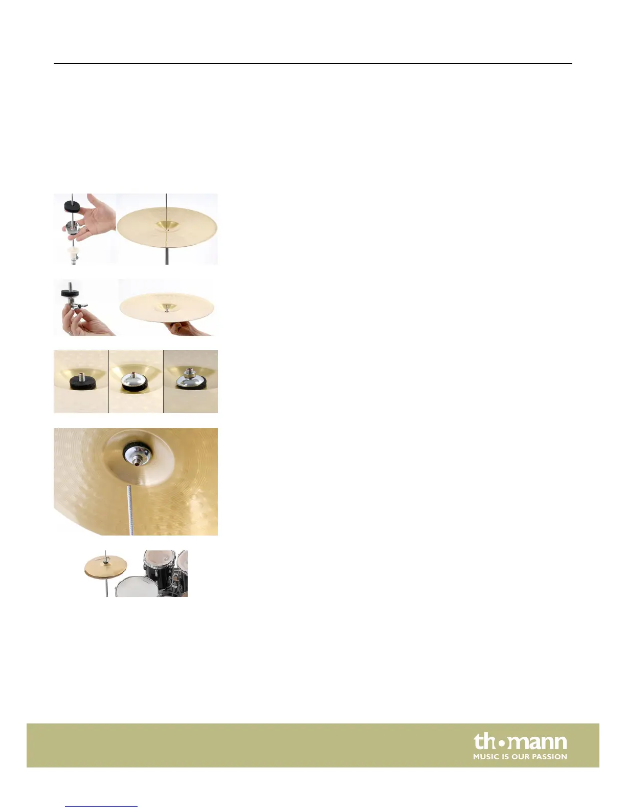 cymbal (labelled "bottom"). Lie it freely onto the stand's felt disk.