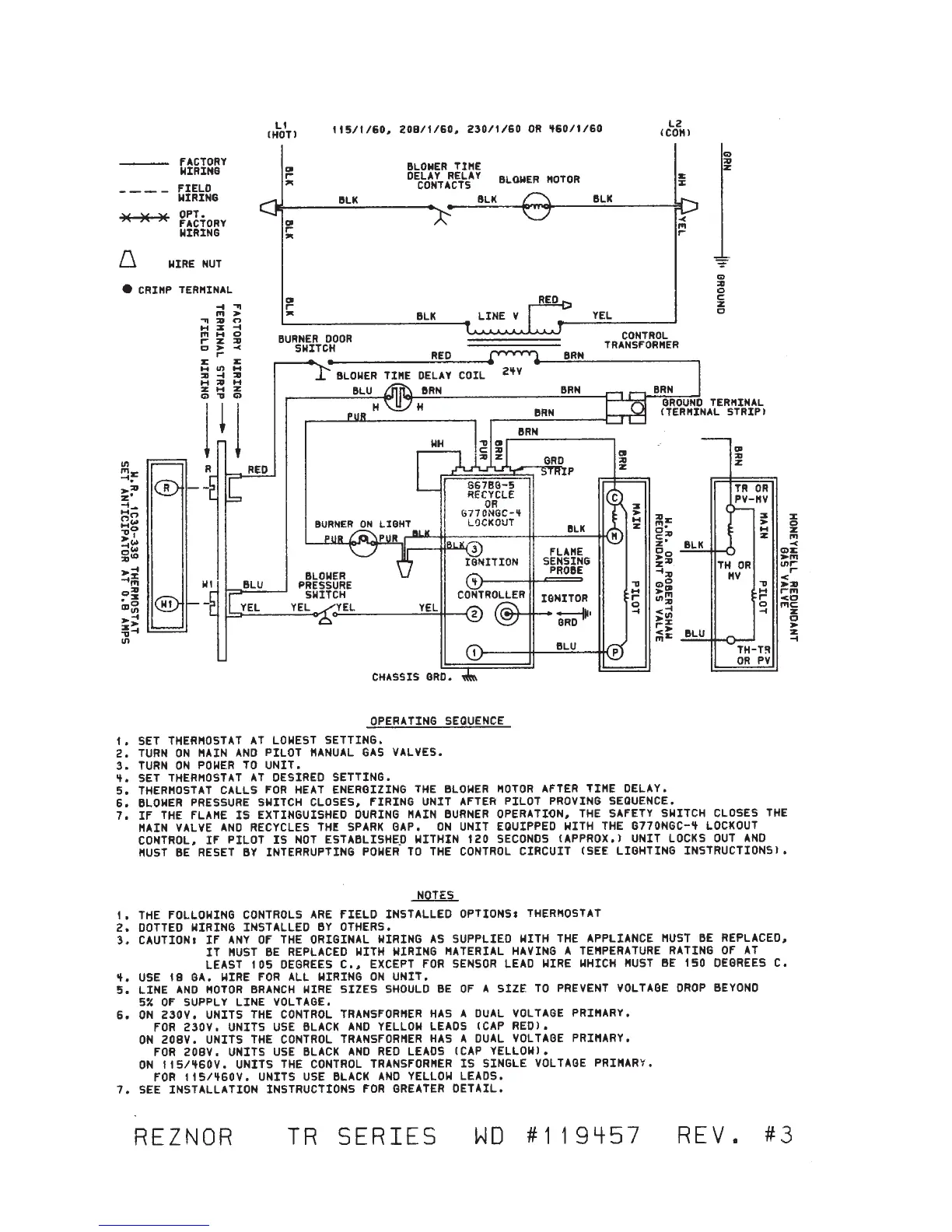 Thomas & Betts TR - WIRING DIAGRAM AND OPERATING SEQUENCE; Wiring Diagram; Operating Sequence