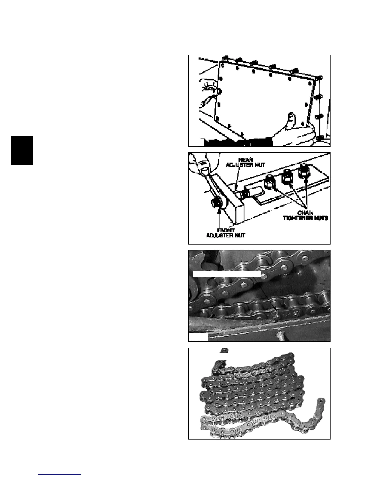 7 Loosen the 3 chain tightener nuts. Refer to Adjusting