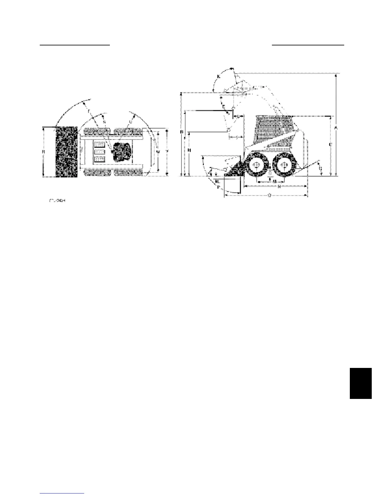 V. Overall width – less bucket . . . . . . . . . . . . . . . . . . . . . . . . . . . . . . . . . . . . . . . . . . . . . . . . . 68” (1727)