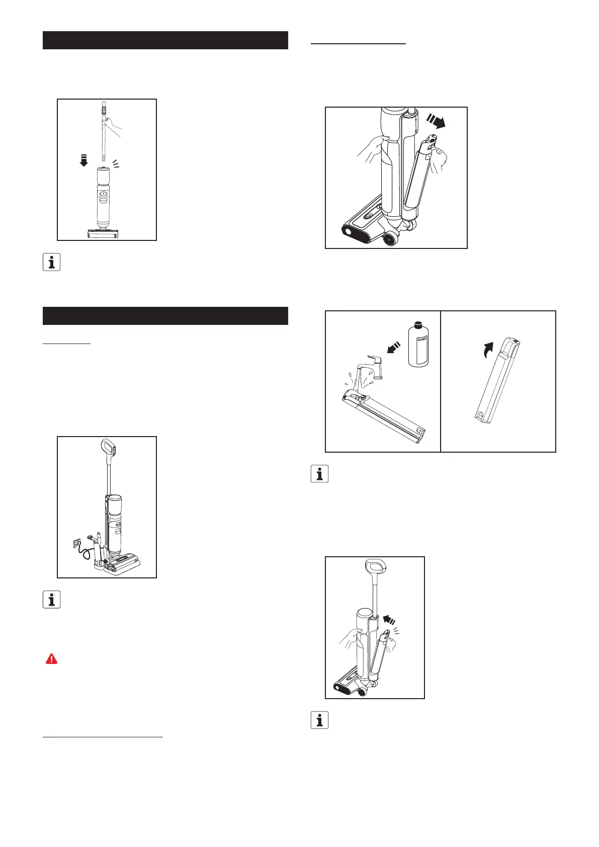met een hand rechtop en plaatst de schoonwatertank met de andere hand