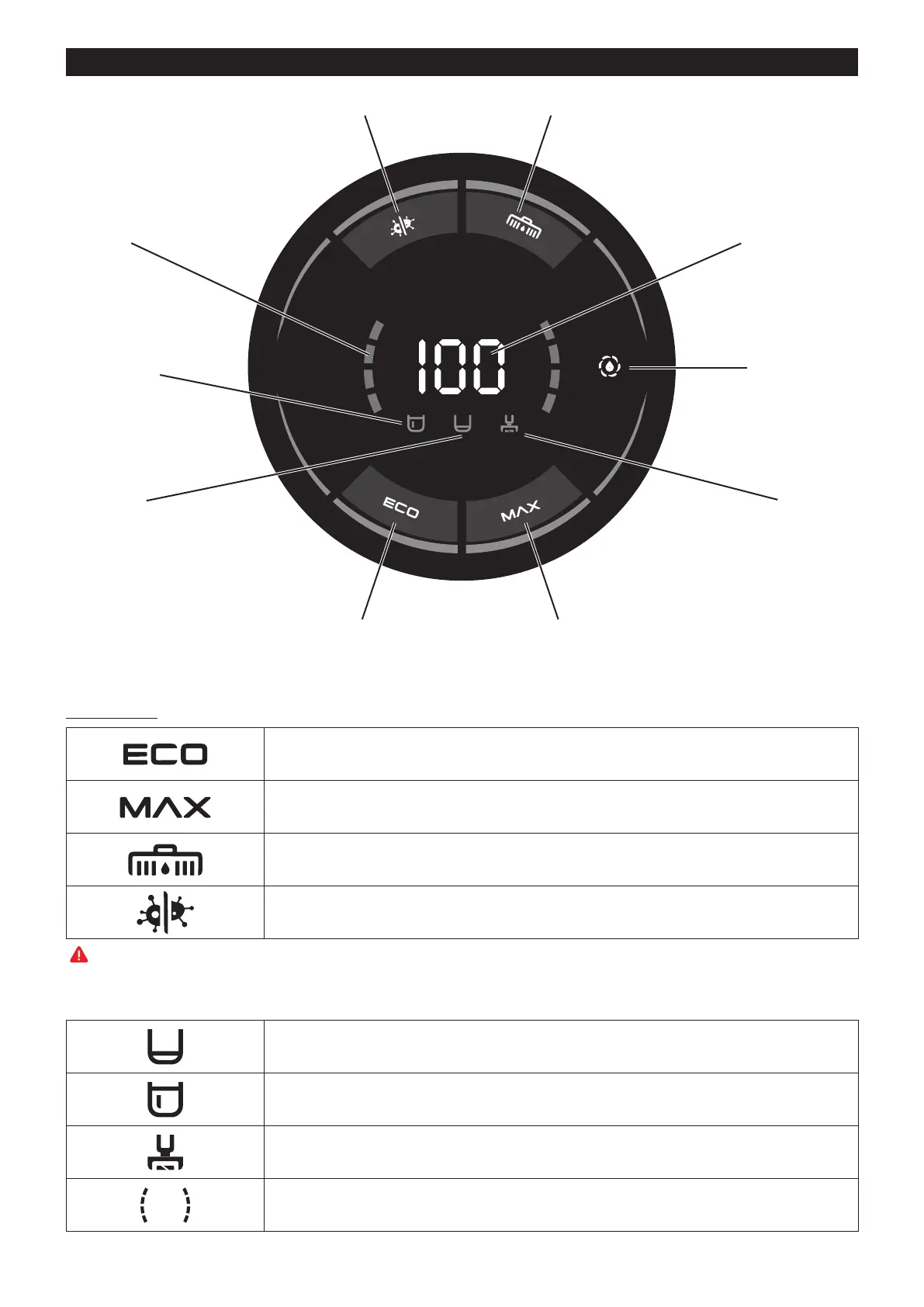 Leistungsmodus: Hohe Saugleistung und hohe Flüssigkeitszufuhr.