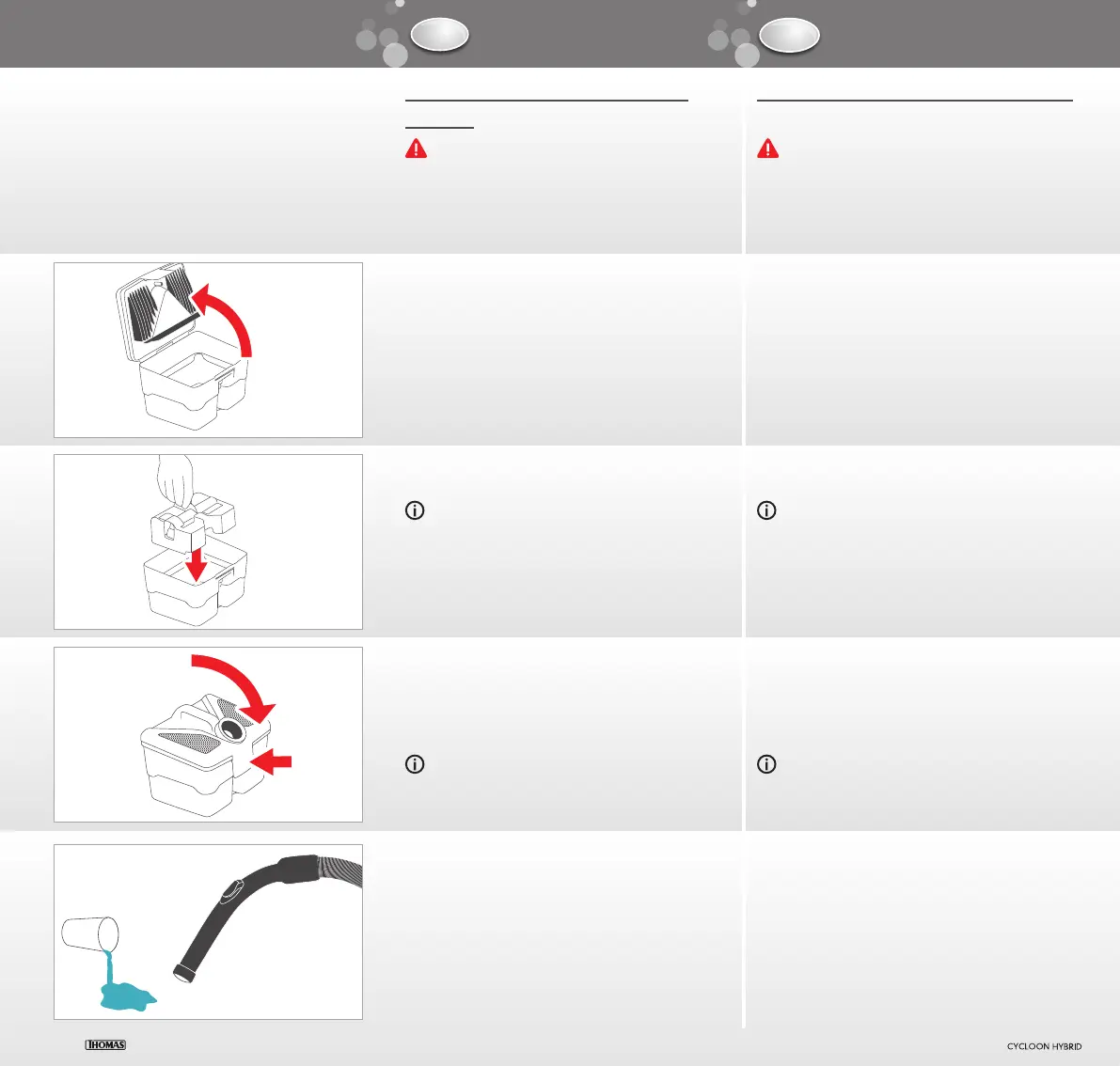 au niveau de la cuve d’eau sale et faites pivoter le couvercle