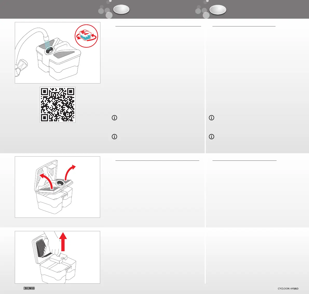 En cas d’aspiration de matières sèches, changez l’eau (1 litre)