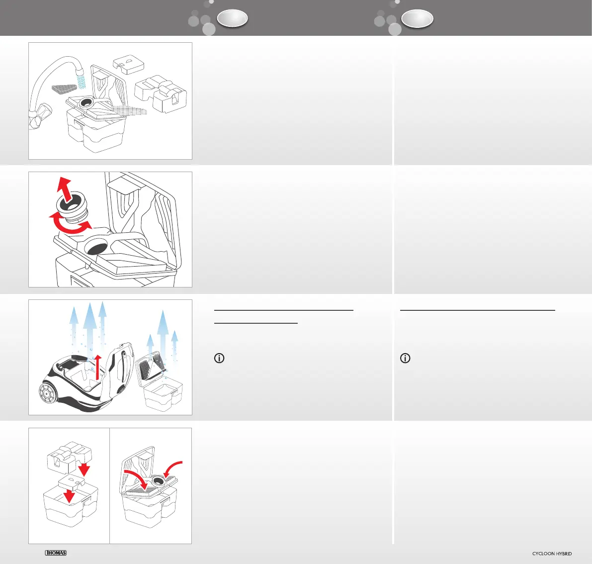Placez les deux filtres en mousse. Fermez les deux parties du couvercle de