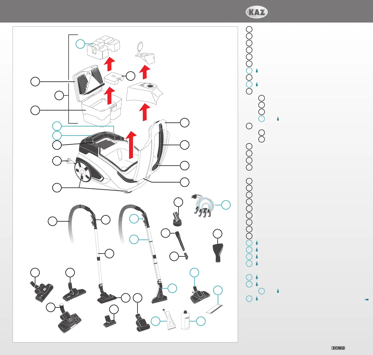 These parts are only used for spray extraction or wet vacuuming.
