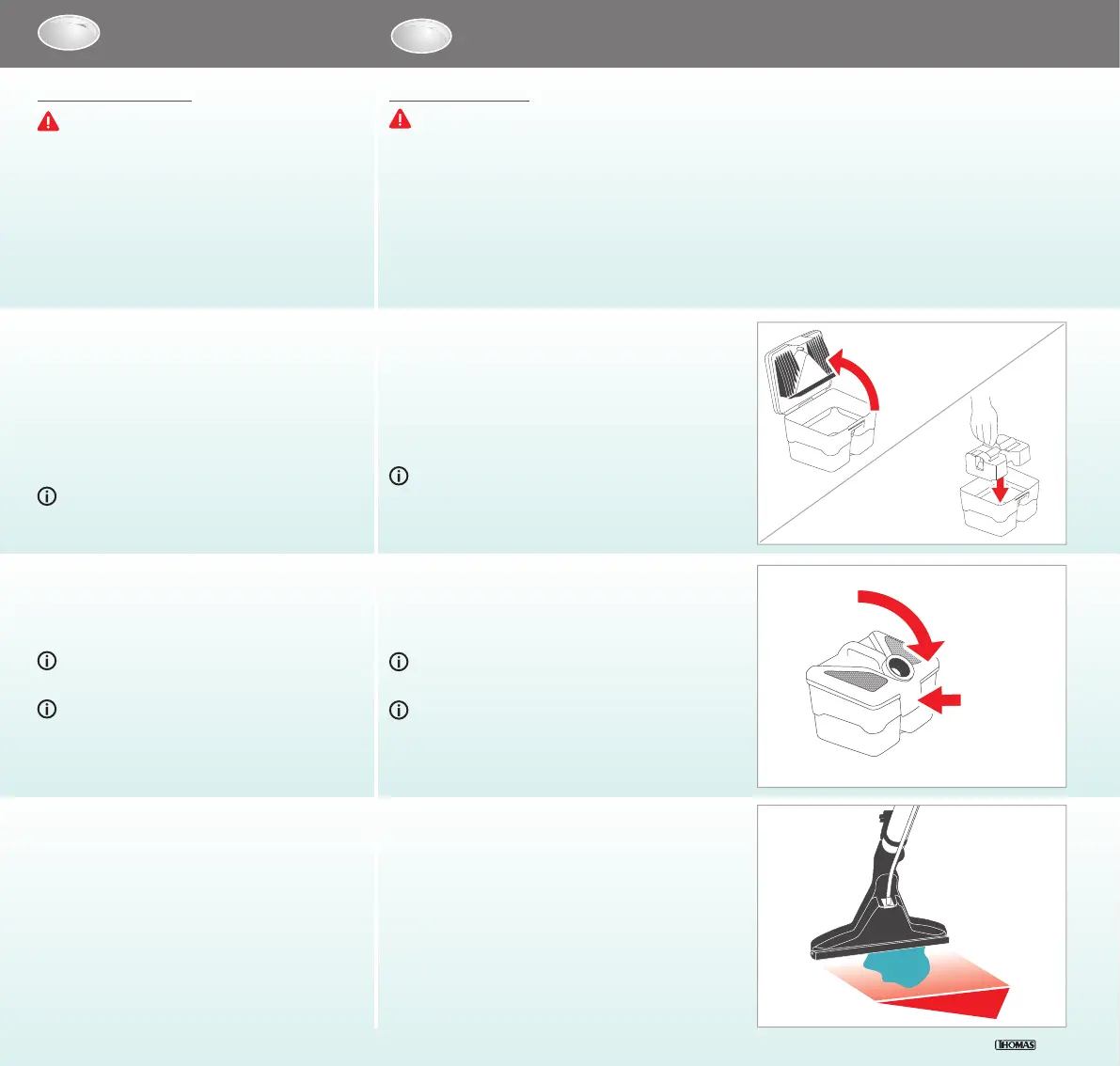 Do not vacuum any larger quantities of liquid, e.g. from
