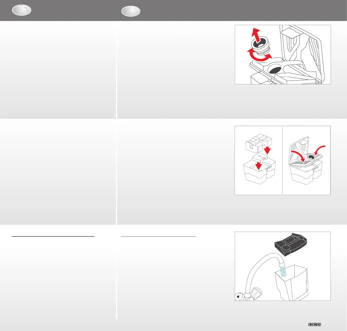 Take off the lid of the fresh water tank by pulling it up and empty the