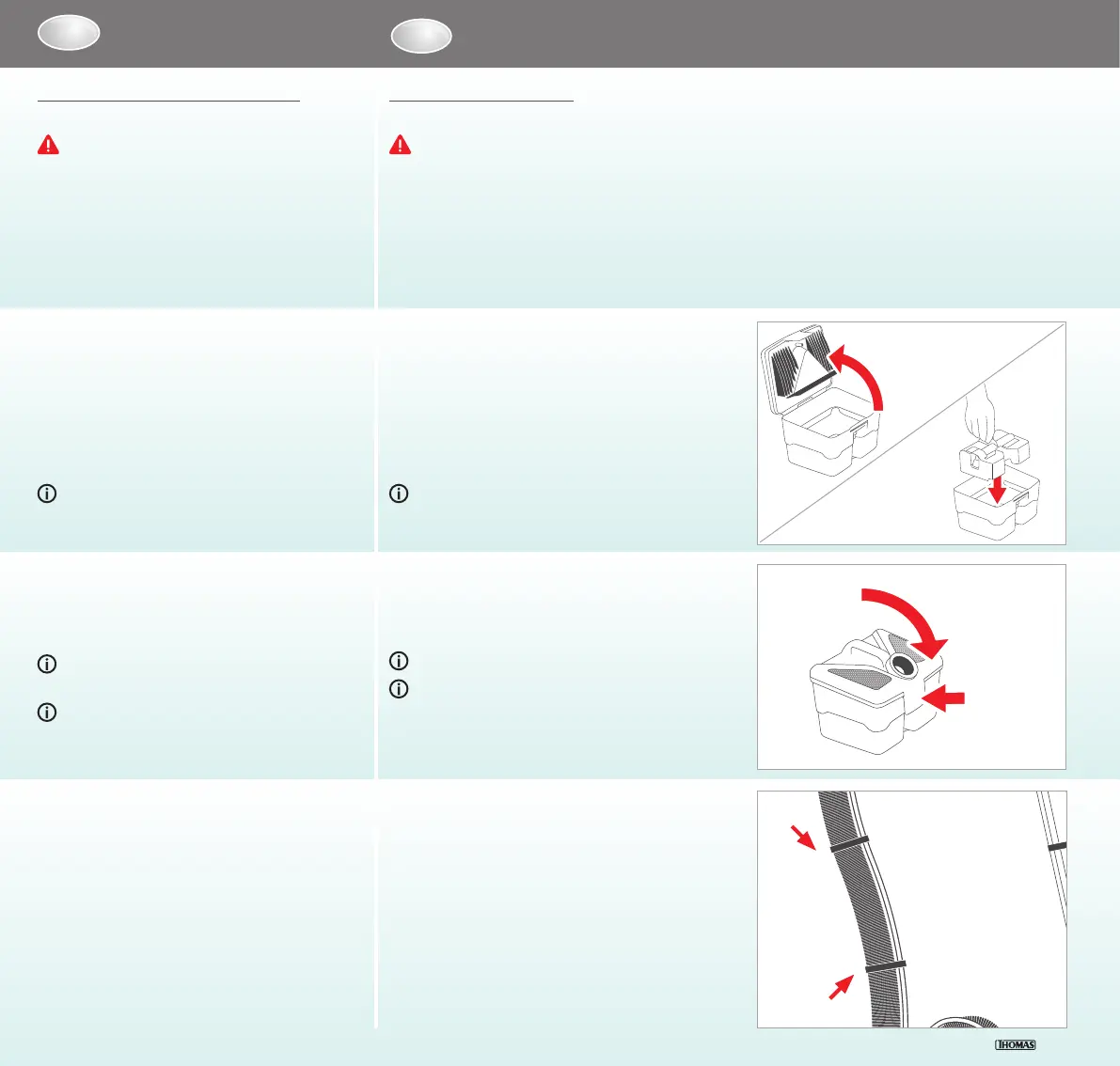 Do not vacuum any larger quantities of liquid, e.g. from con-