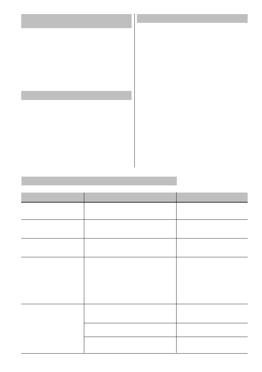 Dérangement/affichage Cause possible Solution