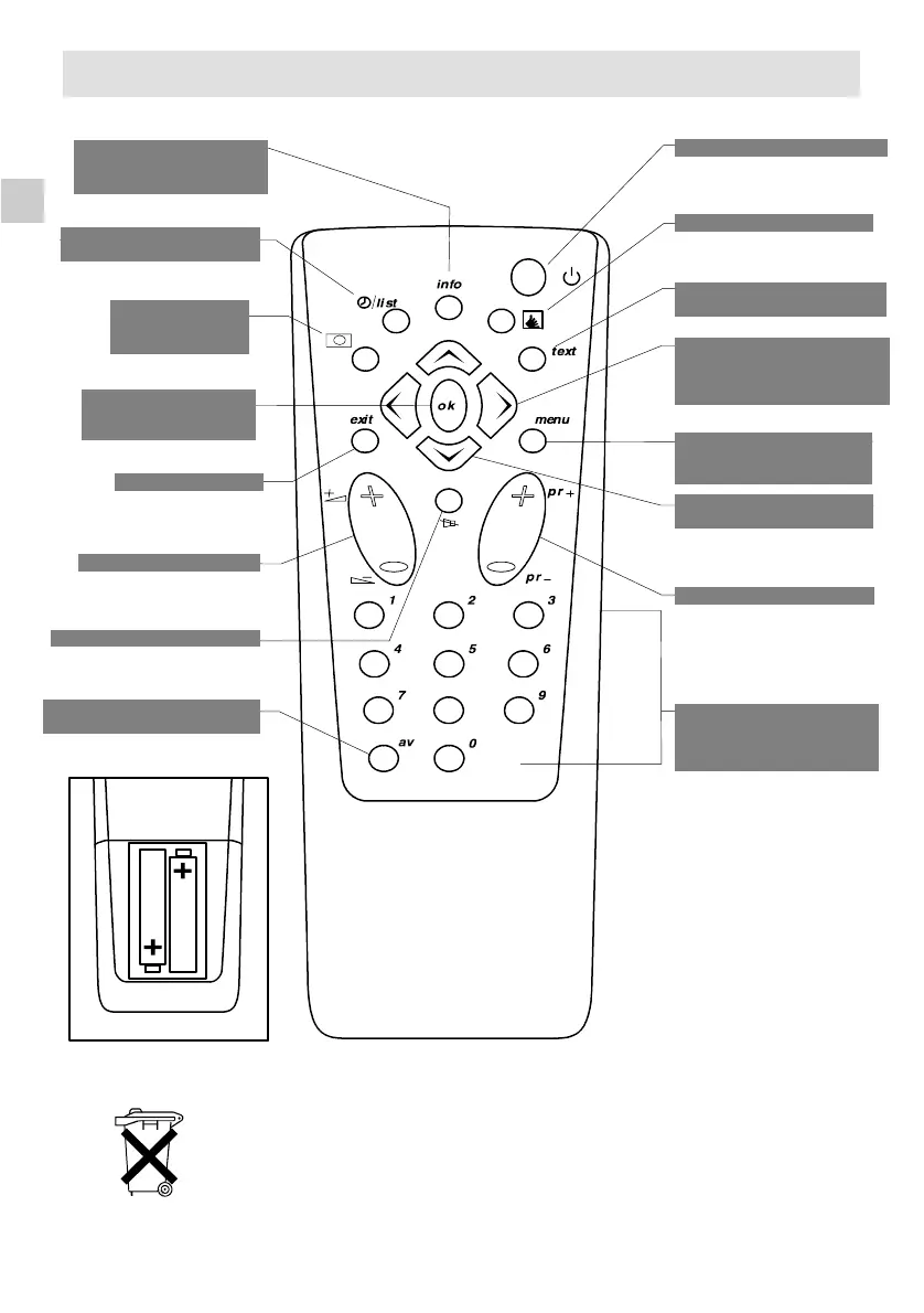 Batteries: Remove the lid at the back of the remote control and insert two 1.5