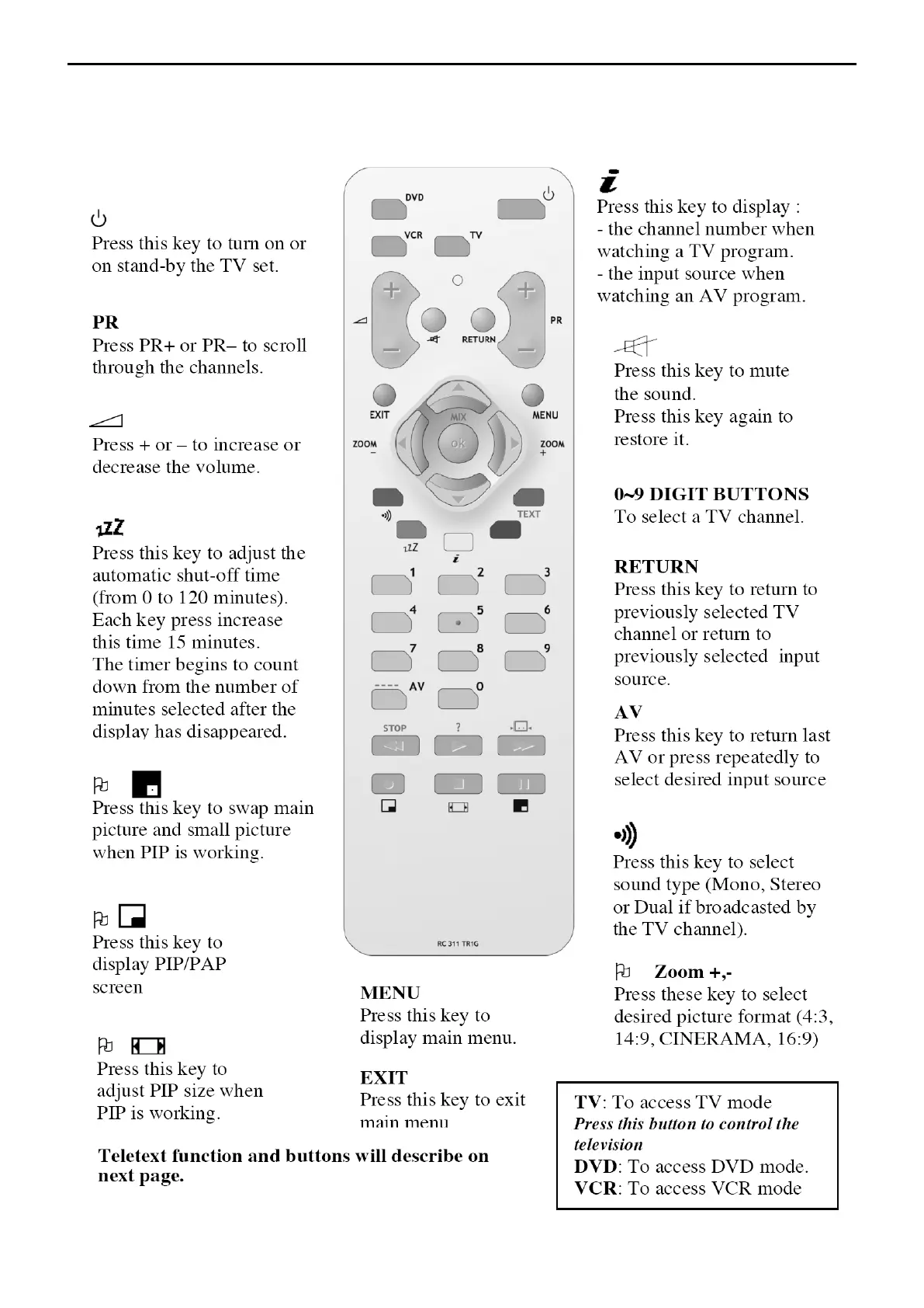 THOMSON 27LM051B6 - Operations Instructions; 2.1 Remote Control Usage