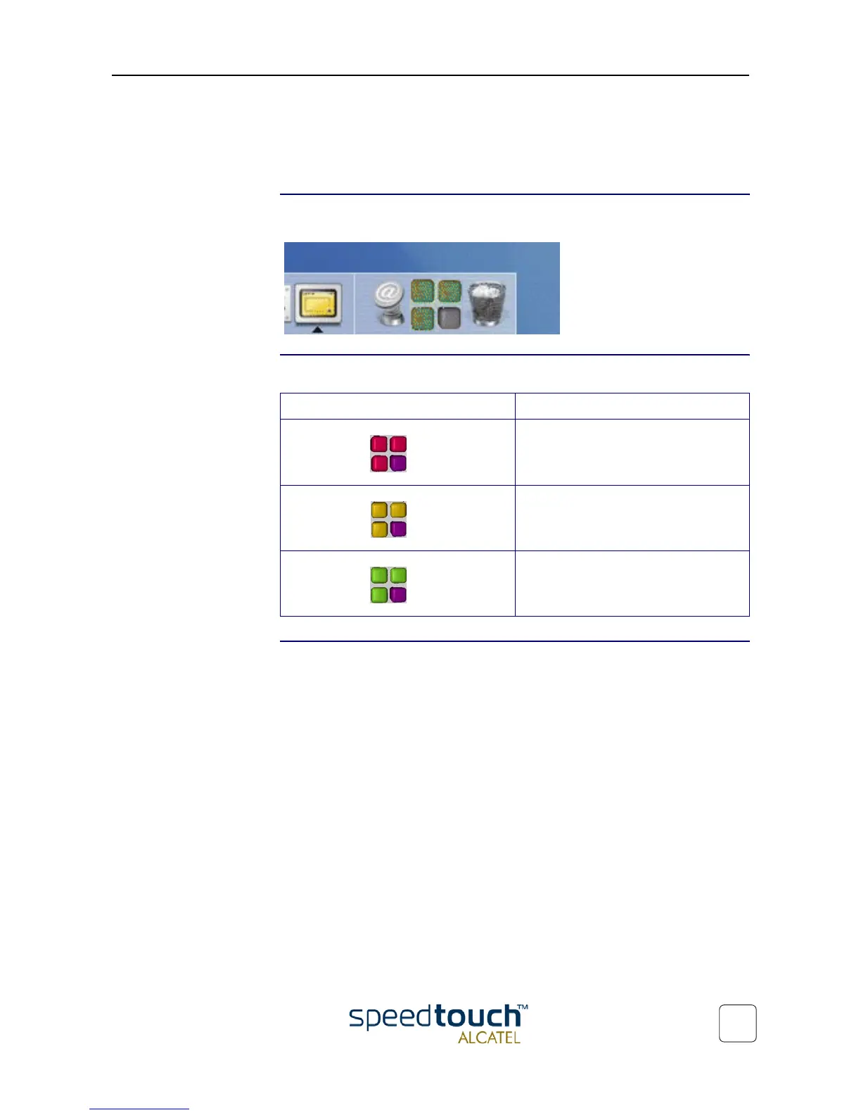 The SpeedTouch™ status icon varies depending the state of the SpeedTouch™ device: