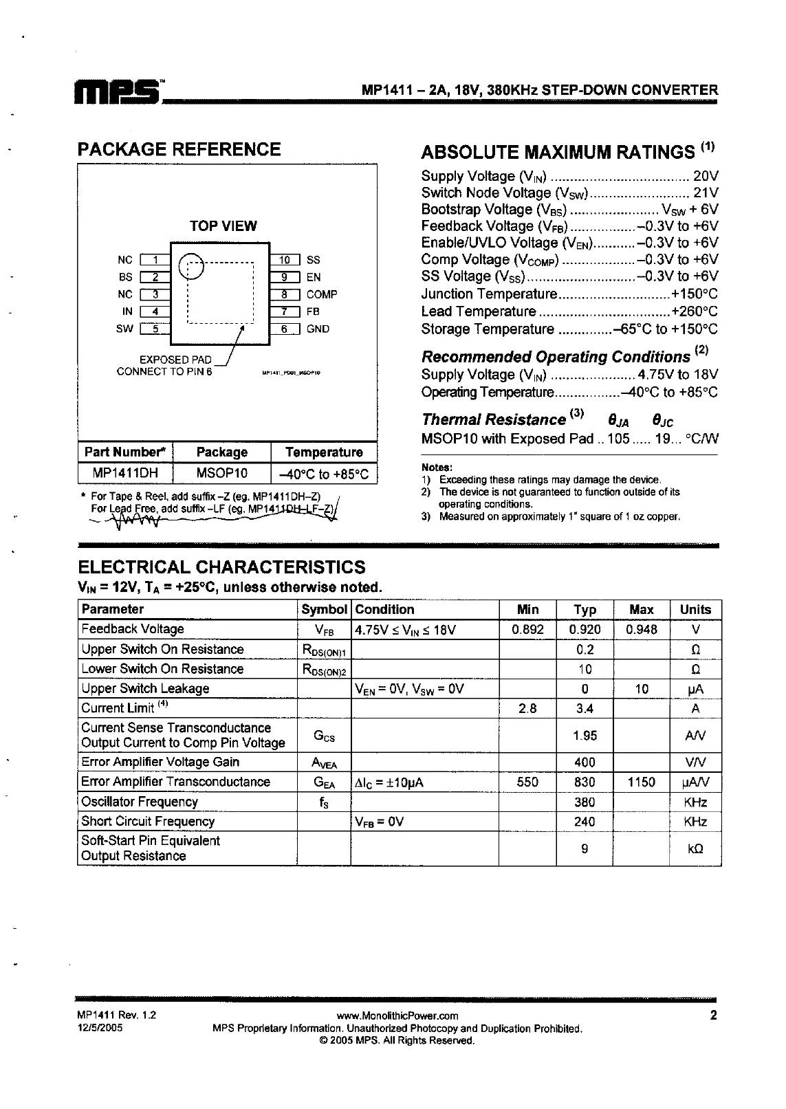 THOMSON 32E90NH22 - Package Reference and Ratings; Electrical Characteristics