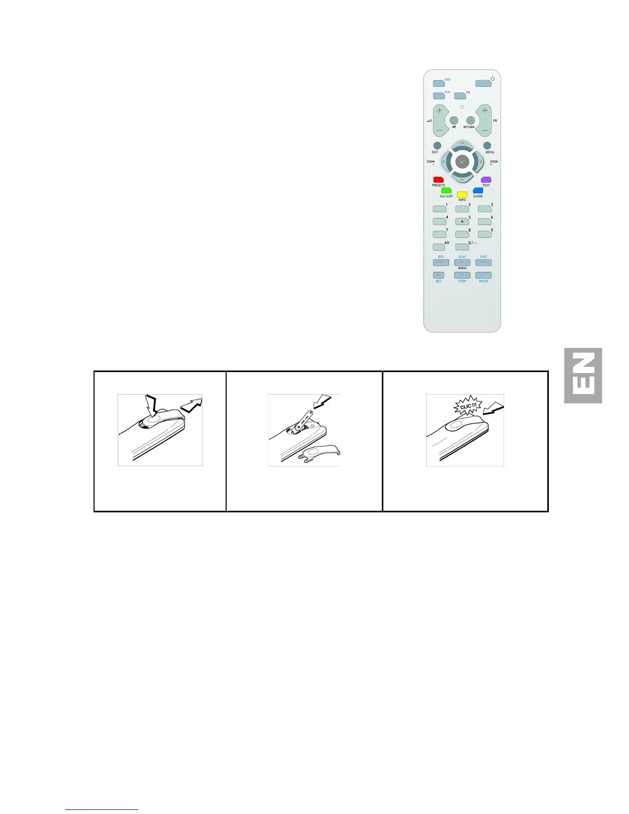 l Remove the batteries from the remote control if you are not using it for a long period of time (several weeks).