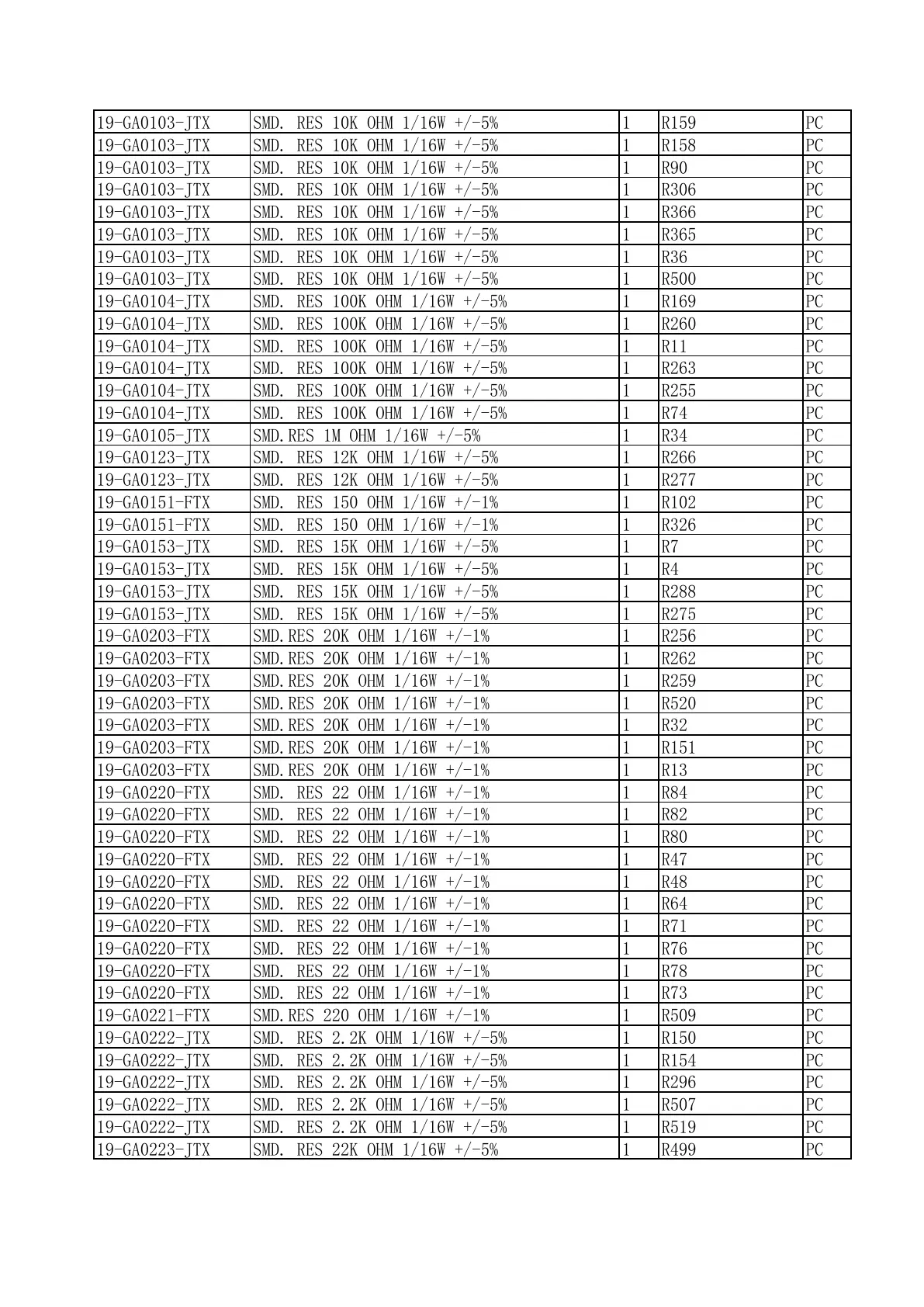 19-GA0203-FTX SMD.RES 20K OHM 1/16W +/-1% 1 R259 PC