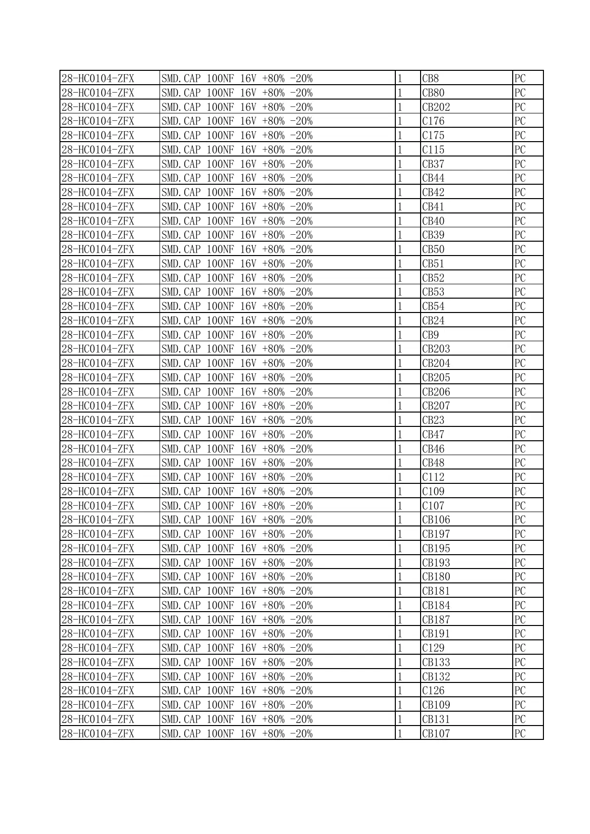 28-HC0104-ZFX SMD.CAP 100NF 16V +80% -20% 1 C115 PC