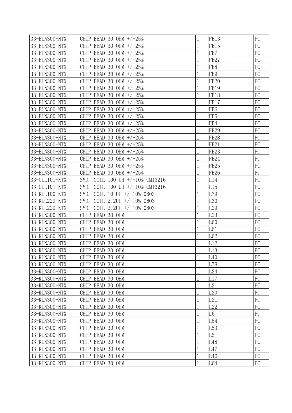 33-KLN300-NTX CHIP BEAD 30 OHM 1 L61 PC