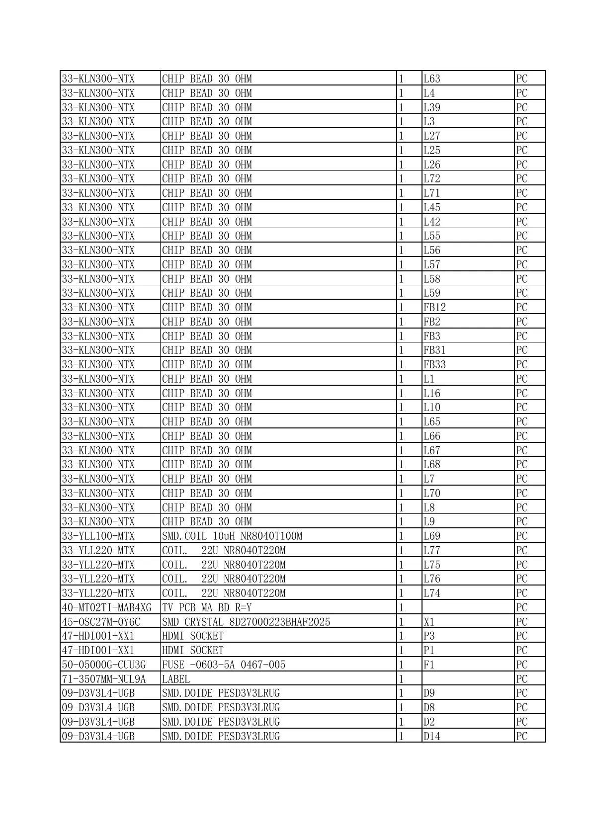 33-KLN300-NTX CHIP BEAD 30 OHM 1 L9 PC