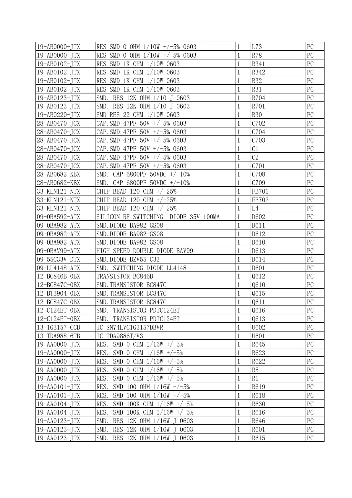 19-AB0123-JTX SMD. RES 12K OHM 1/10 J 0603 1 R704 PC