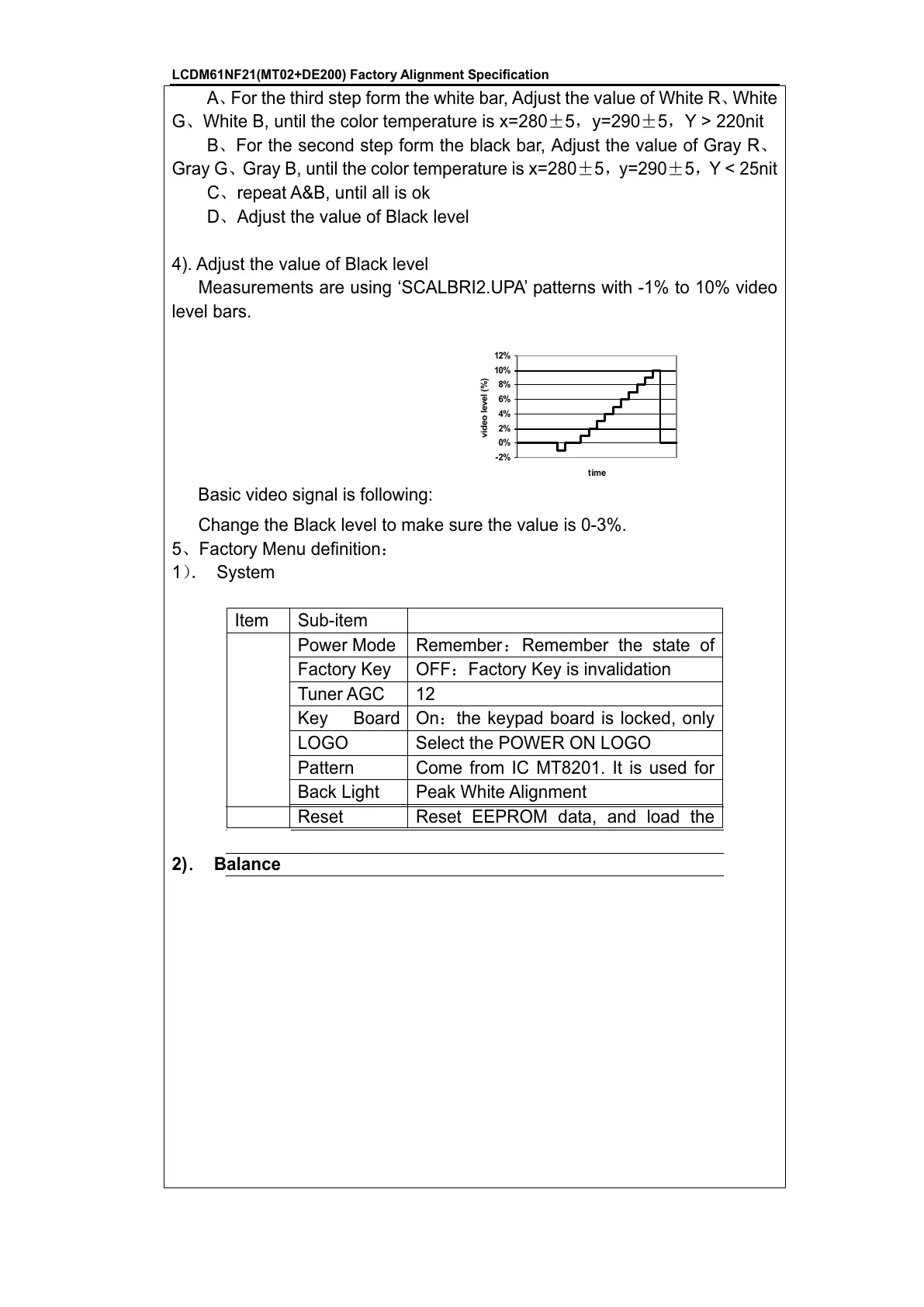 LCDM61NF21(MT02+DE200) Factory Alignment Specification