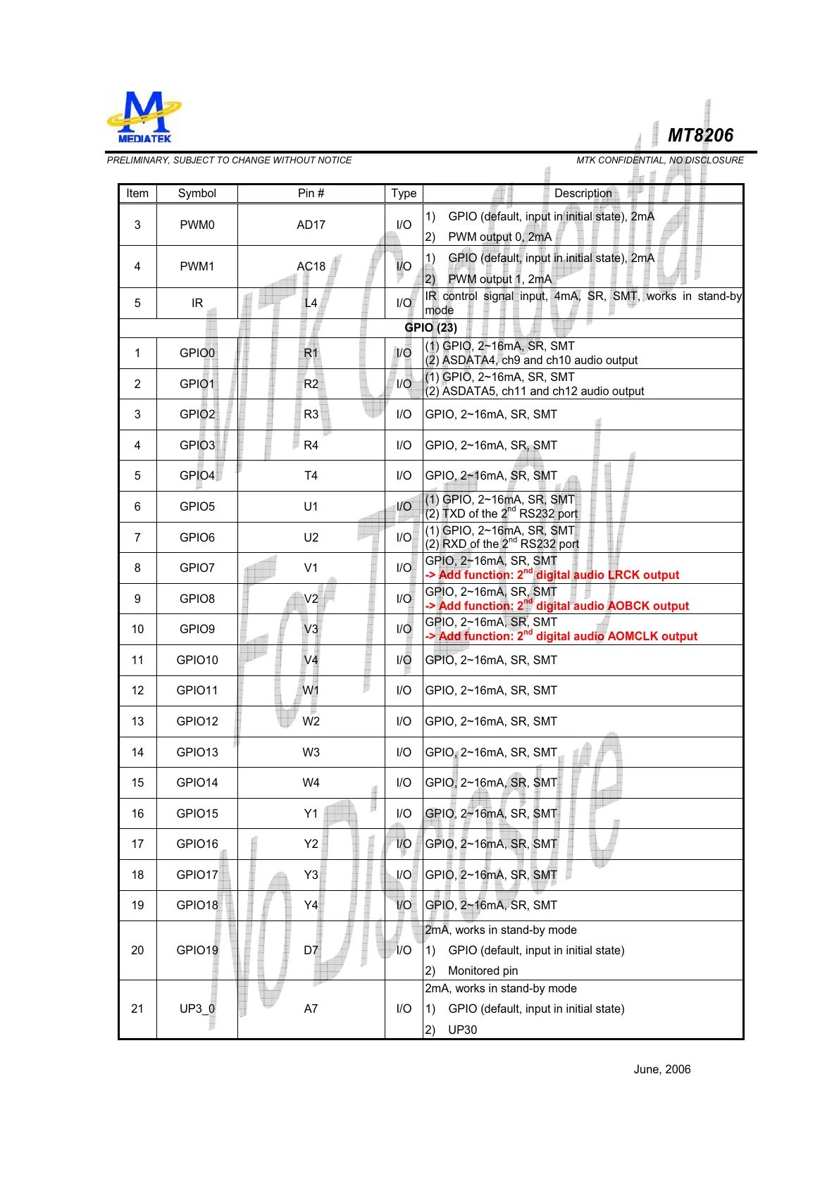 PRELIMINARY, SUBJECT TO CHANGE WITHOUT NOTICE MTK CONFIDENTIAL, NO DISCLOSURE