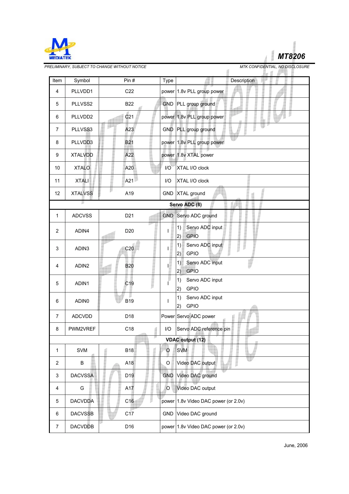 PRELIMINARY, SUBJECT TO CHANGE WITHOUT NOTICE MTK CONFIDENTIAL, NO DISCLOSURE