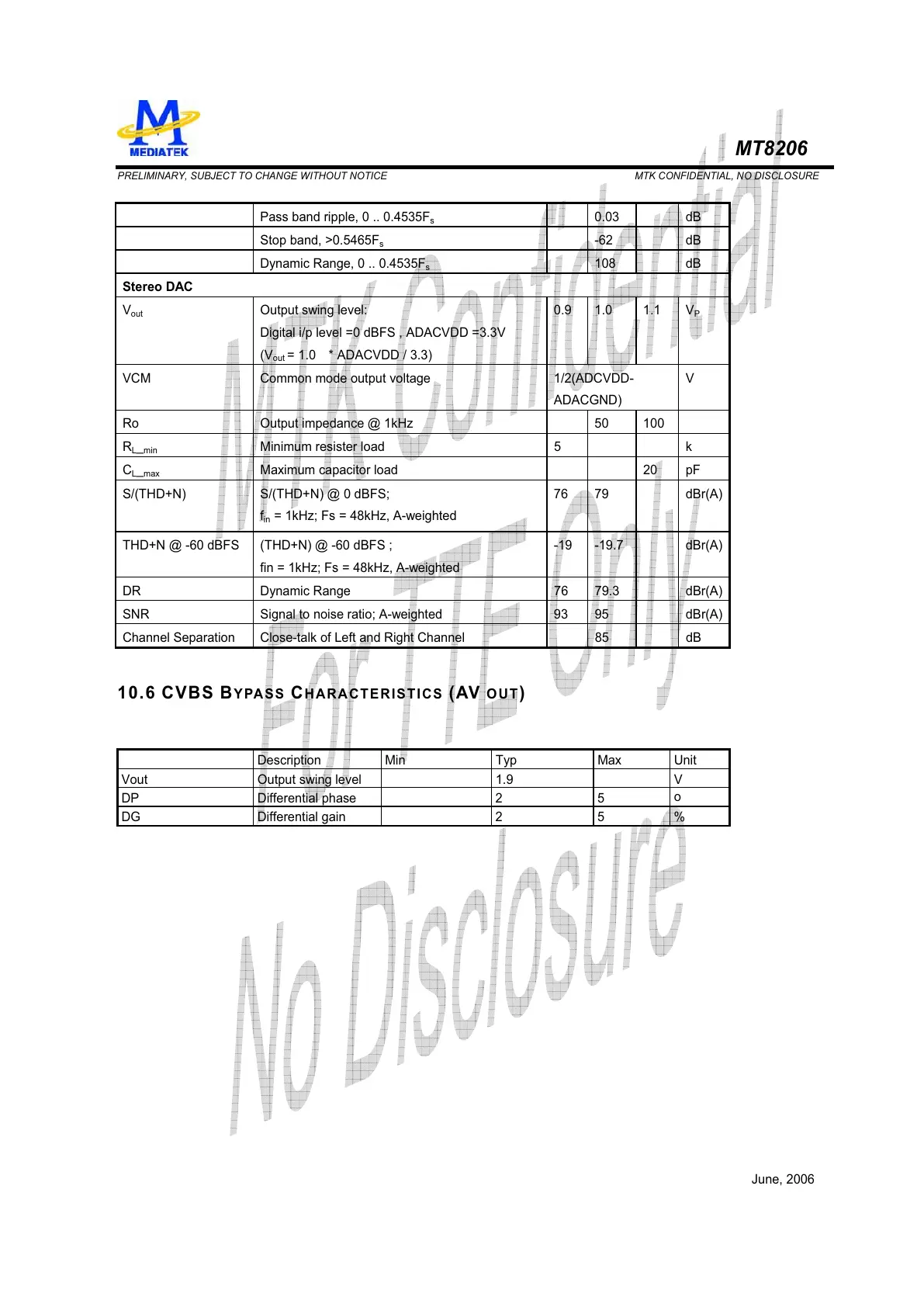10.6 CVBS BYPASS CHARACTERISTICS (AV OUT)