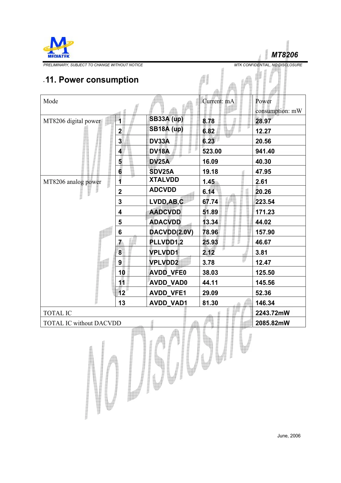 PRELIMINARY, SUBJECT TO CHANGE WITHOUT NOTICE MTK CONFIDENTIAL, NO DISCLOSURE