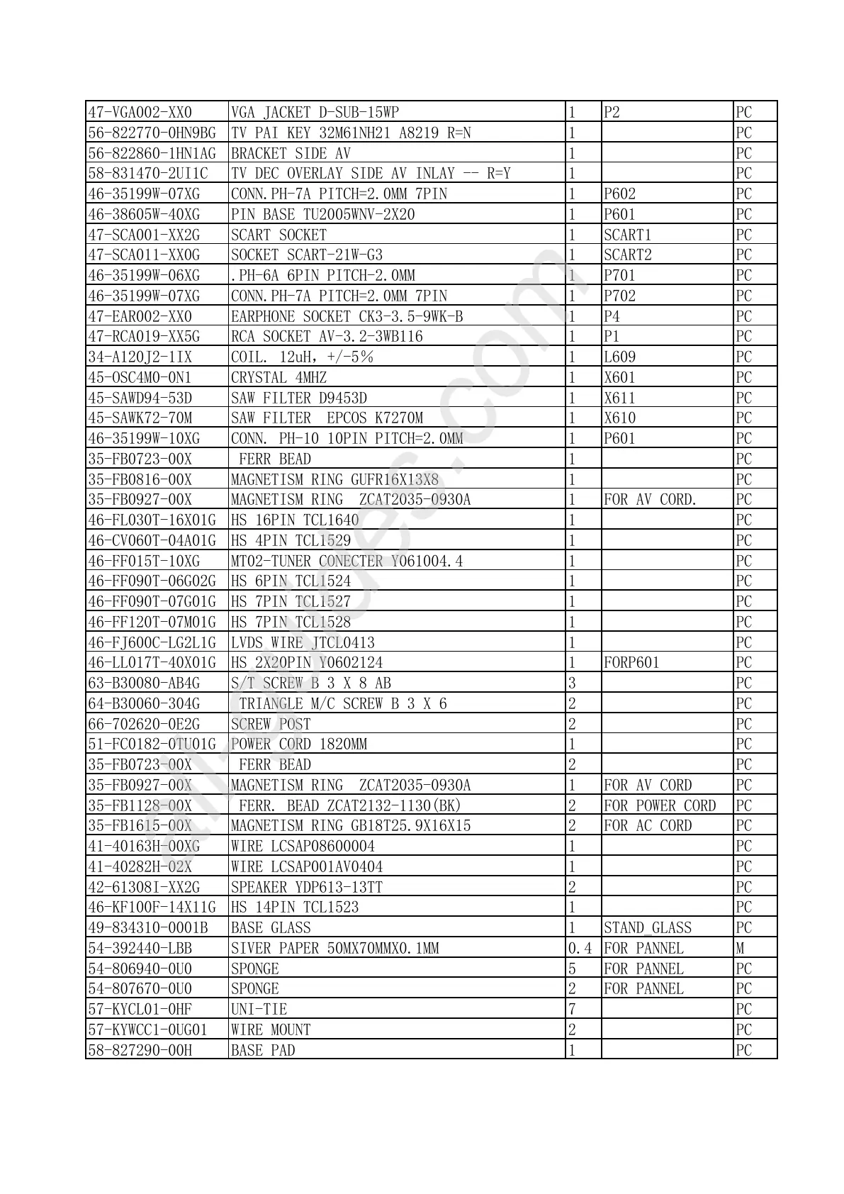 46-38605W-40XG PIN BASE TU2005WNV-2X20 1 P601 PC