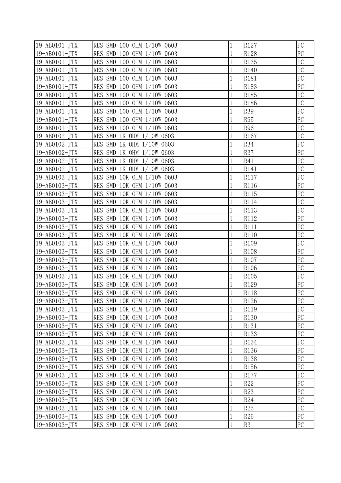 19-AB0103-JTX RES SMD 10K OHM 1/10W 0603 1 R129 PC