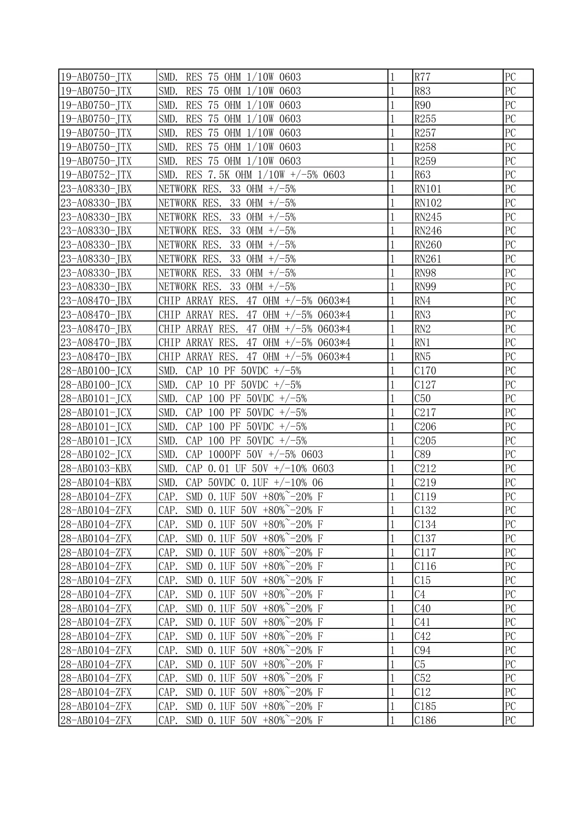 28-AB0104-KBX SMD. CAP 50VDC 0.1UF +/-10% 06 1 C219 PC