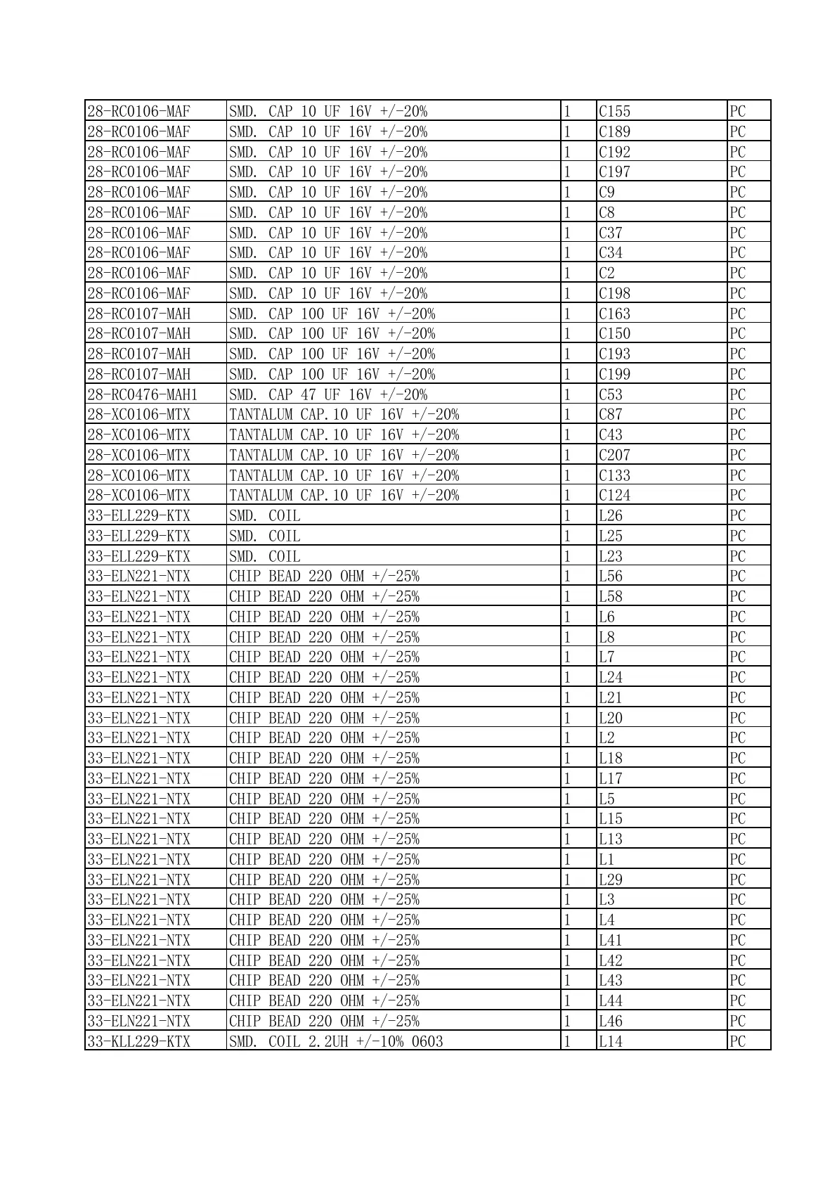 28-RC0106-MAF SMD. CAP 10 UF 16V +/-20% 1 C198 PC