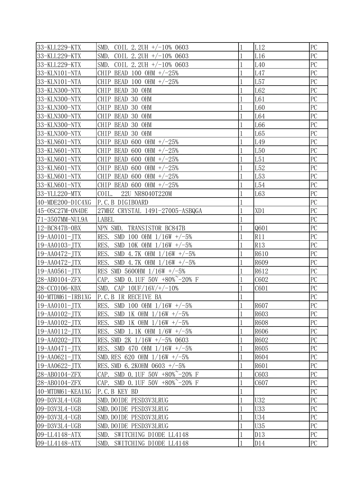 33-KLN601-NTX CHIP BEAD 600 OHM +/-25% 1 L51 PC