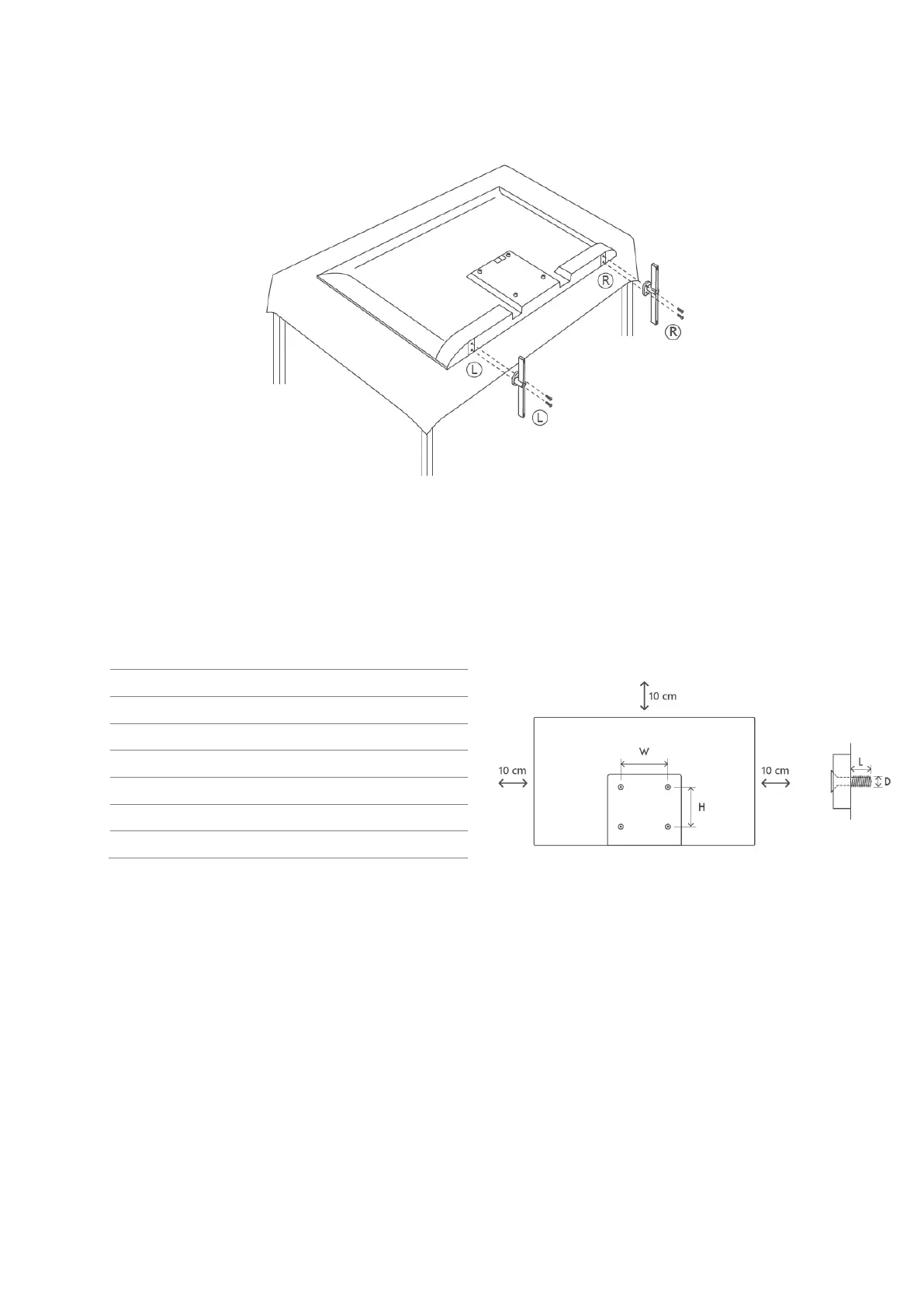 Your TV is prepared for a VESA-compliant wall mount bracket. This is not supplied with your TV.